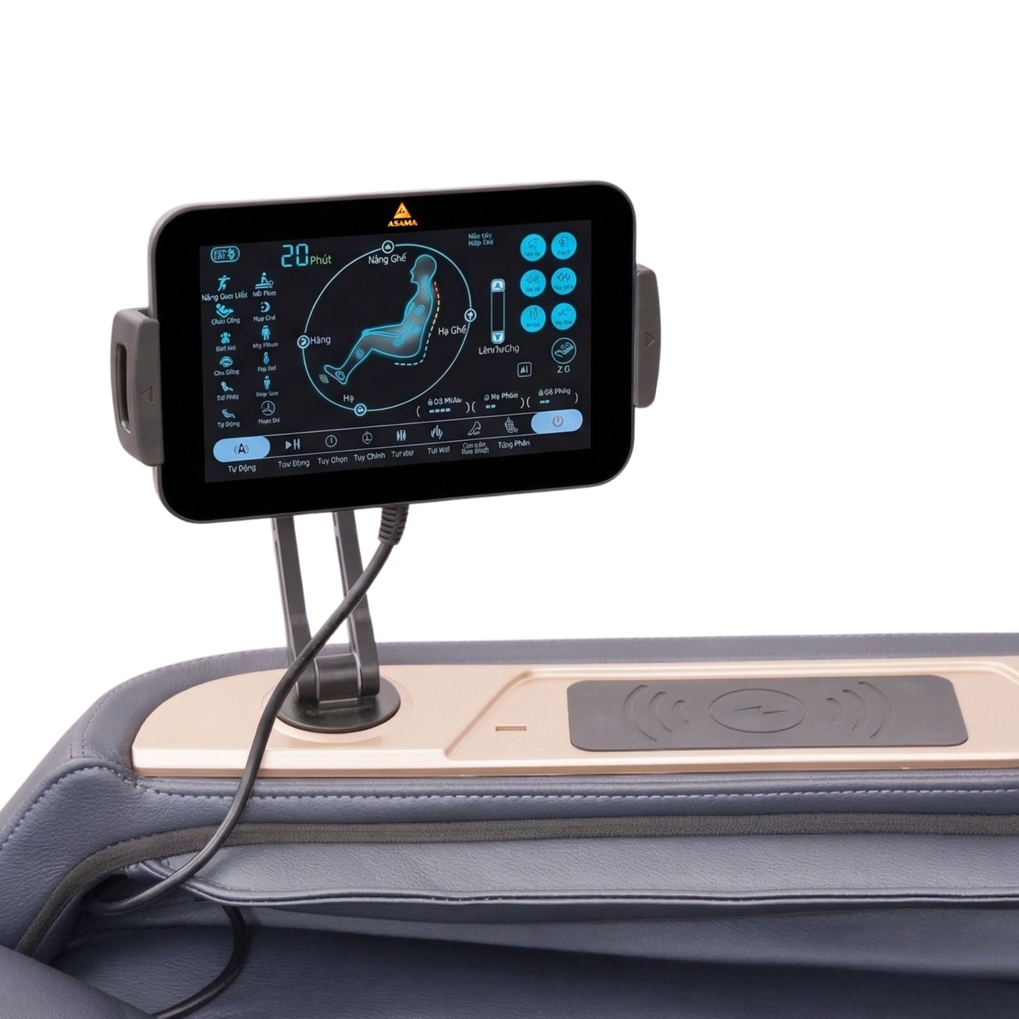 Điều khiển đa phương thức: Ghế tích hợp một bảng điều khiển cảm ứng LCD 7 inch trực quan và các phím điều khiển nhanh ngay trên thành ghế, cho phép bạn dễ dàng điều chỉnh chế độ massage ngay cả khi đang ở tư thế ngả lưng.